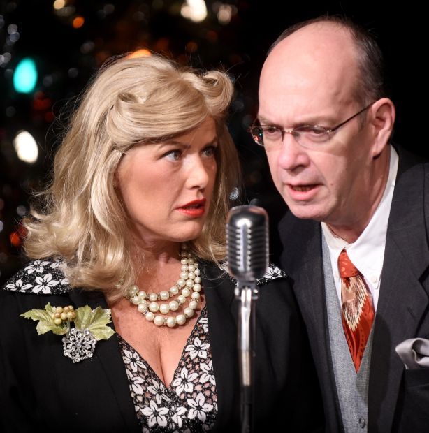 as George Bailey and Anjanett Hawk as Mary. Pianist Kathy McLain