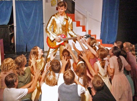 BYE BYE BIRDIE is one of the most captivating musical shows of our time. It tells the story of a rock and roll singer who is about to be inducted into the army. The singer, Conrad Birdie, an Elvis Presley type, has a pompadour and thick sideburns; he wears gaudy gold costumes and speaks in a rugged voice. Albert Peterson, his agent, is a very pleasant mild mannered young man. Albert’s faithful secretary Rose Alvarez keeps him and Birdie moving forward in the world. Rosie concocts one final national publicity plan before Conrad’s induction.
