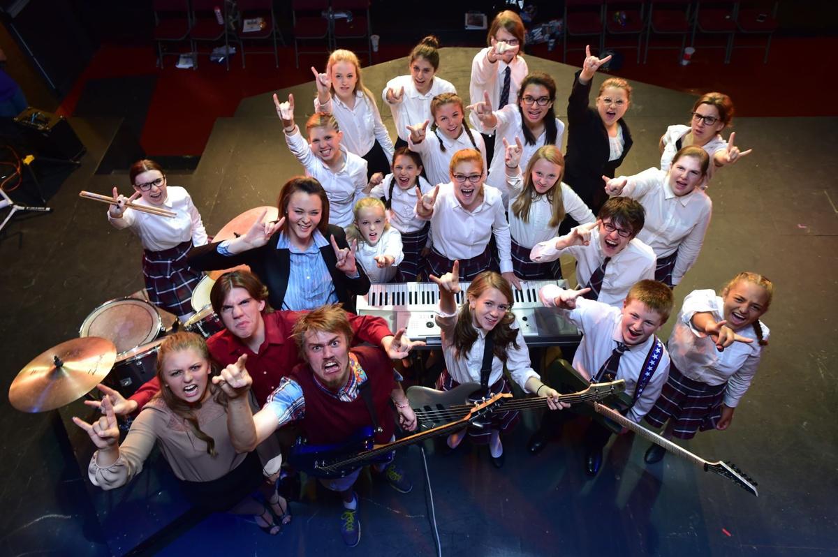 The cast of "School of Rock: The Musical" screams, "Stick it to the man!" during a dress rehearsal at NOVA Center for the Performing Arts.